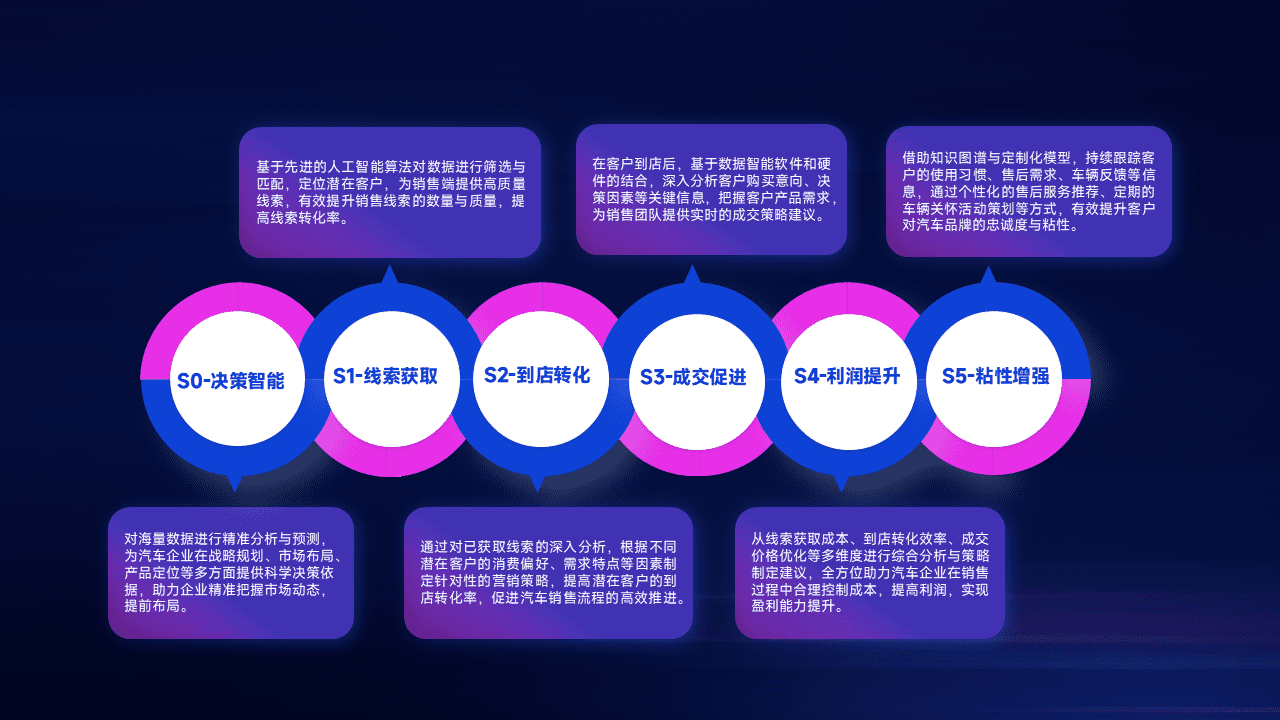 通过拓宽潜在客户来源、、优化线索分配并提高到店转化率,,以增强销售效率。。同时,,利用线索数据不断优化分析模型,,,有效提升转化率,,,,扩大营销影响力。。。。